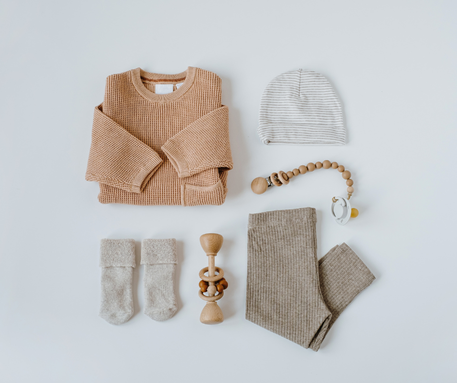 Consider the climate and time of year your baby will be born. For warmer weather, choose lightweight and breathable fabrics such as cotton or bamboo. In colder months, opt for cozy layers like onesie, sweaters, and sleep sacks to keep your baby warm. This is also a consideration when purchasing sizes. If your baby is born in December, don’t buy 0-3 month sizes in summer clothes that will likely not fit them once the warmer weather arrives.