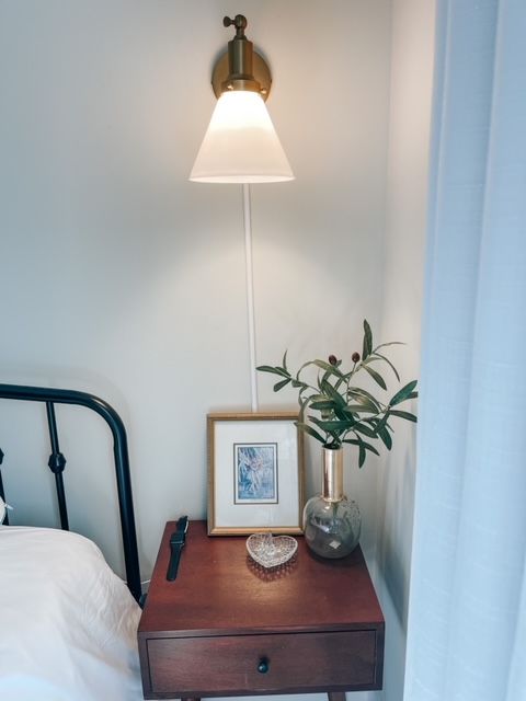 Instead of table lamps, I opted for wall sconces instead. My nightstands are small as is, so I wanted more surface available for us. These lamps from Amazon weren’t originally plug in, but because we rent, hardwired lights weren’t an option. I’m lucky enough to have a very handy husband who finagled the wires in order to achieve the look I wanted.